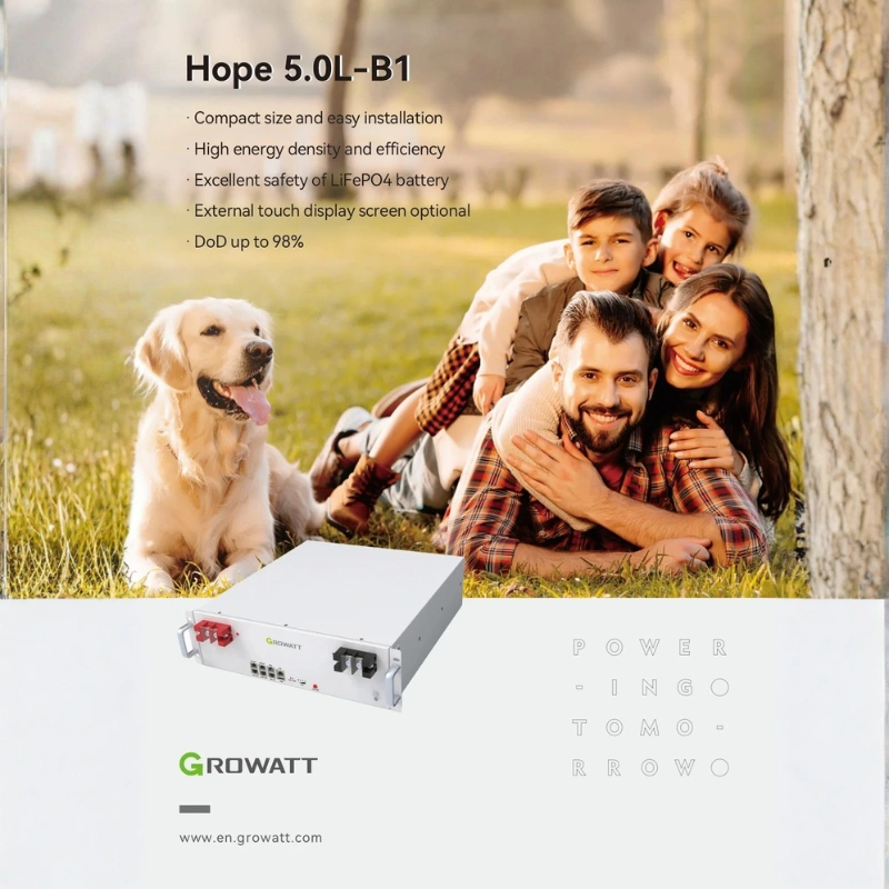 باتری 100 آمپر ساعت لیتیومی Growatt Hope 5.0L-B1 یک ماژول ذخیرهسازی انرژی مبتنی بر فناوری LiFePO₄ است که برای کاربردهای خورشیدی خانگی و نیمهتجاری طراحی شده است. این باتری با ظرفیت نامی ۵٫۰ کیلوواتساعت (۱۰۰ آمپرساعت در ولتاژ اسمی ~۵۰ ولت) انرژی تولیدی پنلها را ذخیره میکند و در زمان تاریکی یا قطع برق، انرژی پایدار و قابلاعتمادی برای تجهیزات مصرفی فراهم میآورد. طراحی مدولار و رکمونت این محصول نصب را ساده کرده و امکان توسعهٔ ظرفیت از طریق اتصال چند ماژول بهصورت موازی را فراهم میسازد تا در پروژههای بزرگتر بتوان بهراحتی ظرفیت ذخیرهسازی را افزایش داد.